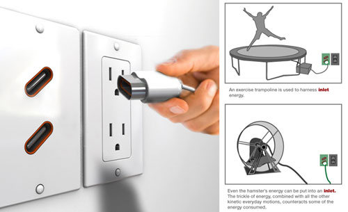 SISTEMA IDEADO POR Carla Diana y Jeff Hoefs QUE FUNCIONA BAJO LA IDEA DE QUE TODO GENERA ENERGÍA. HABLAMOS DE QUE COSAS COMO CAMINAR, ABRIR UNA PUERTA Y HASTA LA RUEDA DEL HAMSTER PUEDEN GENERAR ENERGÍA. El sistema SE ENCARGA DE ACUMULAR ESTA ENERGÍA EN LOS TOMACORRIENTES PUDIENDO ALIMENTAR OTRAS. ES COMO UNA ENTRADA DE FUNCIÓN INVERSA QUE EN LUGAR DE BRINDAR ENERGIA LA ABSORBE PARA PODER UTILIZARSE DESPUÉS.