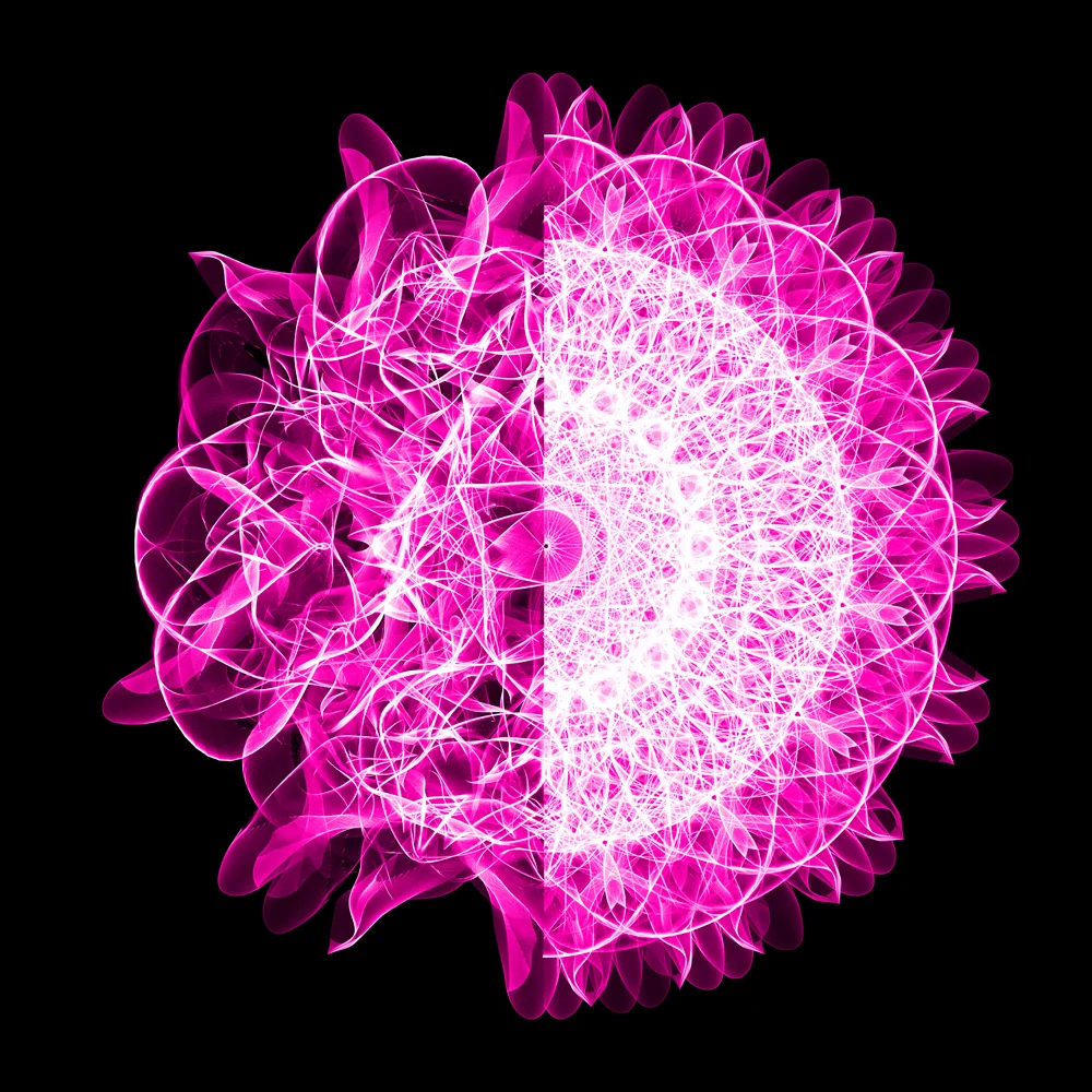 sU ARTE SE CARACTERIZA POR EL USO DE LAS LÍNEAS ABSTRACTAS, ONDAS HIPNÓTICAS y los colores vivos que permiten revelar al espectador cada vez más mientras más tiempo se quede mirando la obra.