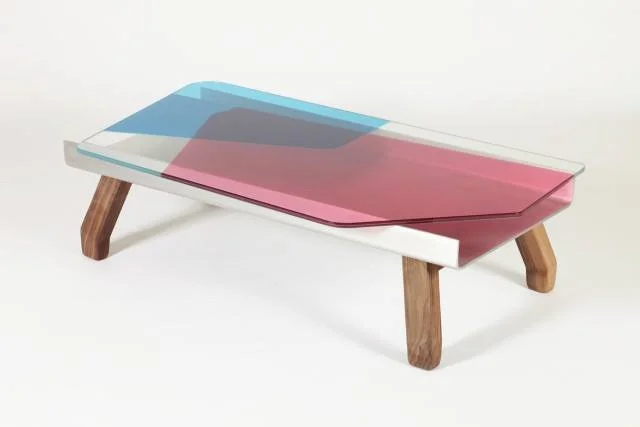 esta mesa hecha de madera y vidrio pintado se expuso en la exposición " OK" y debido a esto es de edición limitada.