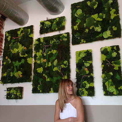 PARA ELLA, TENER ESPCIOS VERDES DENTRO DEL HOGAR es abrir una ventana a la naturaleza, relaja del dia a dia urbano y, ELLO, SIN NINGÚN TIPO DE CUIDADO YA QUE Las plantas se presevan en una camara de vacio. ESTAS PLANTAS ON PROVENIENTES DE LUGARES COMO ECUADOR, ESCANDINAVIA, ETC. ACTUALMENTE REALIZA DISTINTOS TIPOS DE CUADROS, INCLUSO UN mural de 16mt cuadrados en Madrid, EL CUAL fue un encargo a medida para la casa mercedes benz QUE, se instalÓ en una de sus tiendas en la calle serrano de madrid.