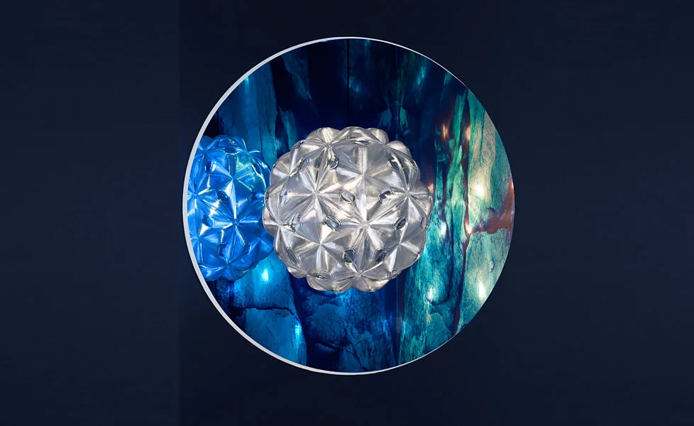 LUMINOSIDAD EN FORMA DE PRISMA LA OBSESIÓN CON LA GEOMETRÍA LLEVA UNA VEZ MÁS A ESTE DISEÑADOR A QUERER VOLVER ESFÉRICO LO REFERENTE CON LA LUZ. ESTA PRESENTACIÓN CUENTA CON 60 LENTES QUE HACEN QUE LA LUZ SE REFRACTE DE UNA MANERA PECULIAR E INUSUAL. SU ESTRUCTURA, FLEXIBILIDAD E ILUMINACIÓN DARÁN UNA IMAGEN ATREVIDA AL LUGAR.